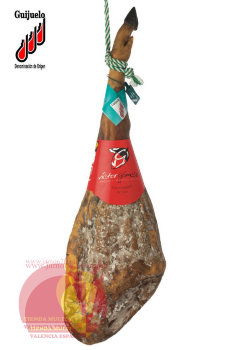 Хамон Иберико Себо Кампо из Гихуэло, изготовленный трационно, ремесленным способом. Используется морская соль, , засолка достаточно пуктуальна - хамон нельзя назвать соленым, как и типичный Гихуэло имеет слегка сладковатый вкус. Ломтики этого хамона с многочисленными тонкими жировыми прожилками, и оттенками мяса от красного-пурпурного до розоватого. Сало блестящее и слегка золотистое, раскрывает низкую точку плавления благодаря диете. Как и все продукты с желудевой диетой, хамон не повышает уровень холестерина и благотворно влияет на здоровье потребителей. Хамон в зрелом виде имеет признаки натурального вяления имея на поверхности грибковую флору зеленовато-серую, особенно рядом с вырезом V. Кость тонкая и продолговатая, как обычно бывает у продукта полученного от иберийской породы. Прекрасный выбор учитывая цену.
