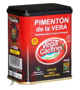 Vega Cáceres - одно из немногих предприятий производящих копченую паприку де де ла Вера ДОП. В 2013 году Ла Далии испонлось 100 лет - огромный опыт и максимальное качество. Паприку марки Vega Cáceres используют дома, в ресторанах, а также именитые производители колбасных изделий, используя для чорисо, ломо. Эстремадурские перцы сушат, размалывают, превращая в паприку, а главное - предварительно коптят. Происходит этот важный для потребителя технологический процесс довольно долго, до двух недель, в больших кирпичных цехах прямо рядом с плантациями. Называются эти двухэтажные сооружения Secaderos, «сушилки» — совсем как соответствующие помещения на мясокомбинатах, где доходят до нужной кондиции подвешенные на крепких верёвках окорока хамона. В сушилках для перца на первом этаже энергично тлеют большие дубовые чурки, обеспечивающие неповторимый дымный аромат и привкус будущей эстремадурской паприке. На втором этаже секадеро томятся на крепких деревянных решётках горы перечных стручков, впитывая аппетитные нюансы своего будущего вкуса. Время от времени их надо ворошить, чтобы случайно не подгорели и равномерно продымились. Различают три основных разновидности эстремадурской паприки: сладкая (т.е. не очень острая), остро-сладкая (иногда её называют полусладкой) и острая (пикантная). Существует определённая сортовая закономерность: из меньших по размеру и более округлых стручков получается более мягкая по вкусу паприка. Свои оптимальные потребительские качества при надлежащем хранении паприка из Эстремадуры сохраняет примерно полтора года. Благодаря аромату, вкусу и стойкости цвета копчёная паприка является одним из главных ингредиентов мясной и рыбной продукции в Испании. Без молотого красного перца невозможно представить современные испанские колбасы, и в первую очередь знаменитую чорисо (chorizo). С особым трепетом к паприке относятся любители деликатесов.